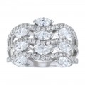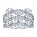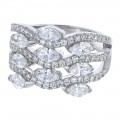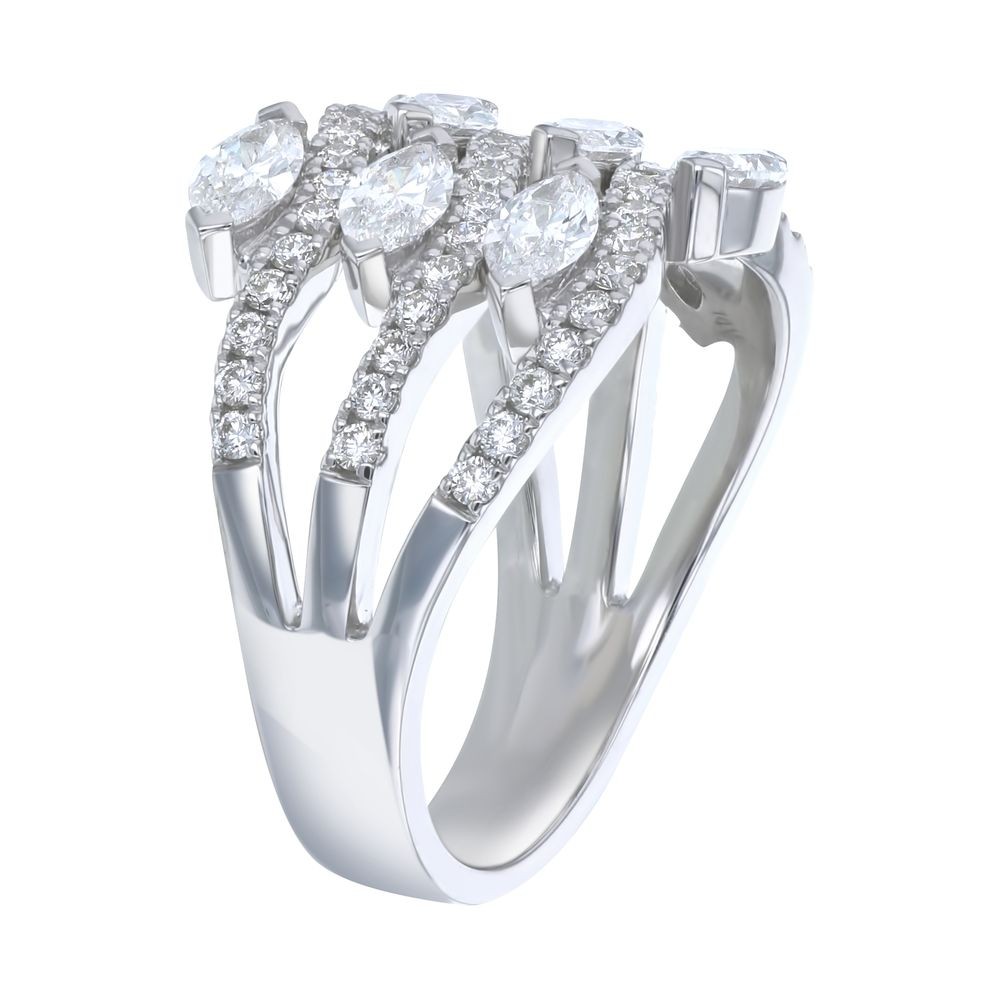 14K white gold multi row wave style ring set with 2.00 carats fancy cut marquise and round brilliant diamonds.