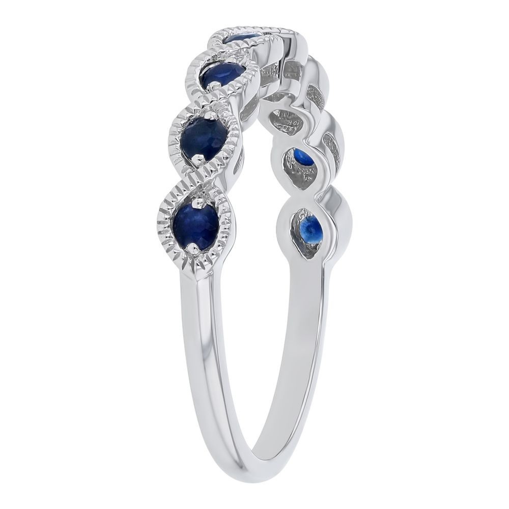 14K White Gold Blue Sapphires Milgrain Infinity Band Ring