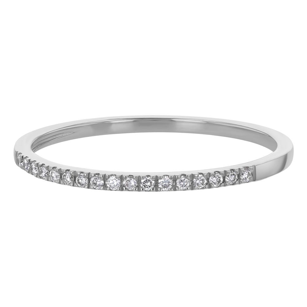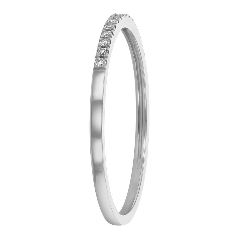 14K white gold semi-eternity dainty and classic band ring with 0.08 ct. round diamonds.
