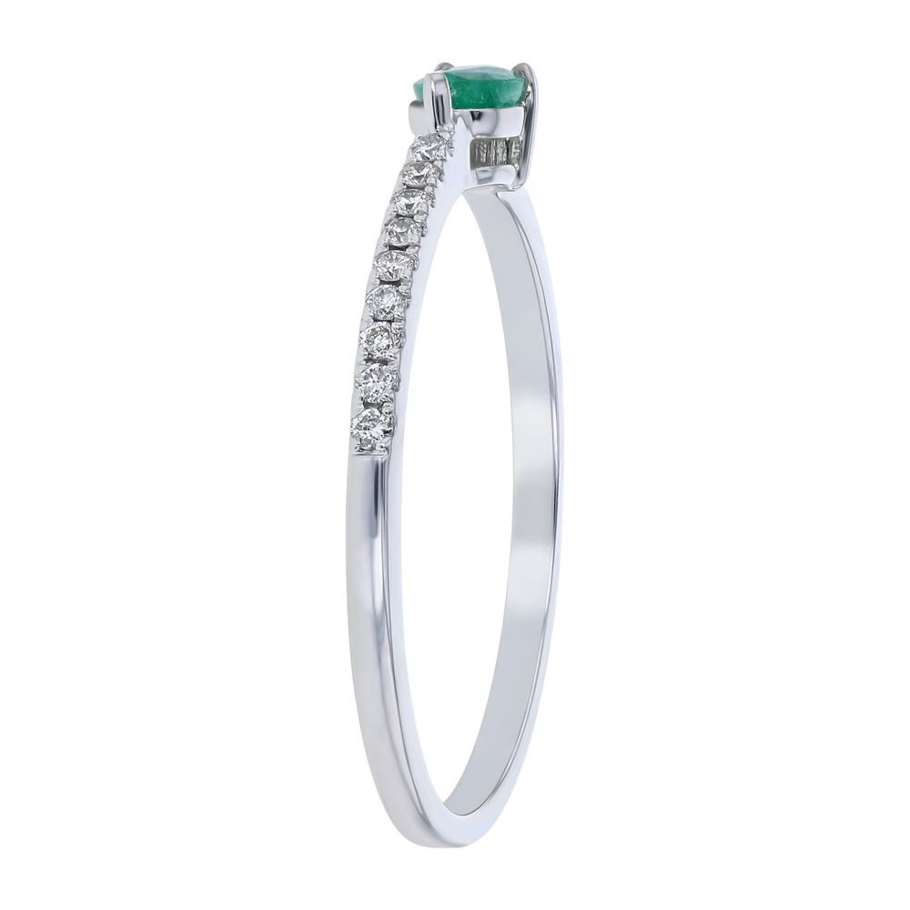 14K white gold band ring set with 0.20 ct. pear shape emerald and 0.10 ct. round brilliant diamonds.