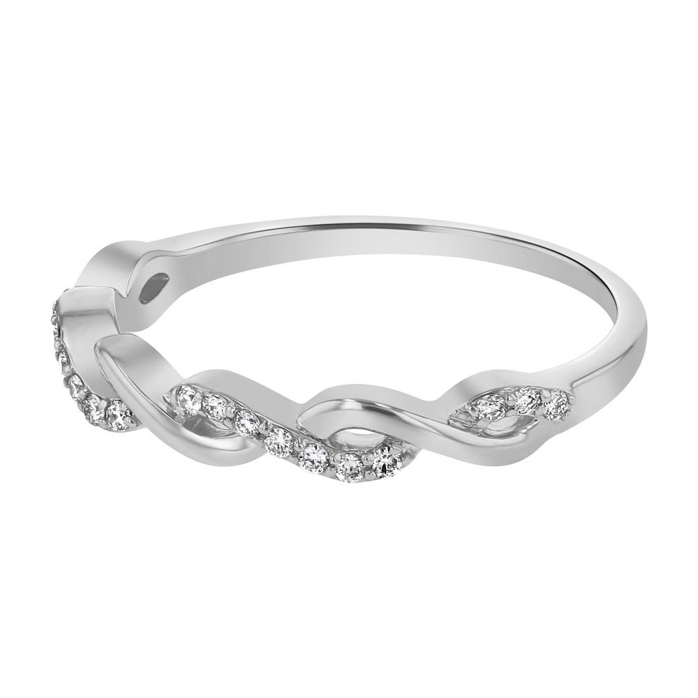 14K white gold semi-eternity infinity band ring set with 0.12 ct. round diamonds.