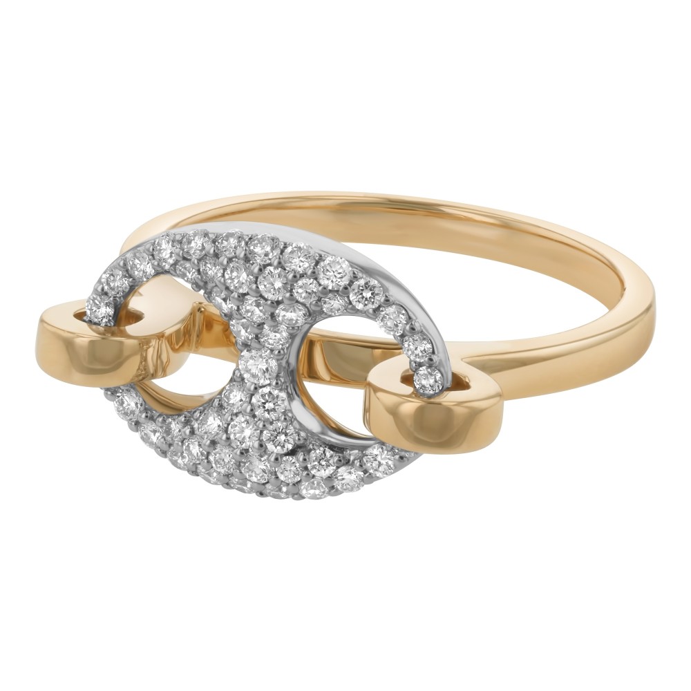 14K yellow and white gold mariner link ring set with 0.35 ct. round brilliant diamonds and polish finish.