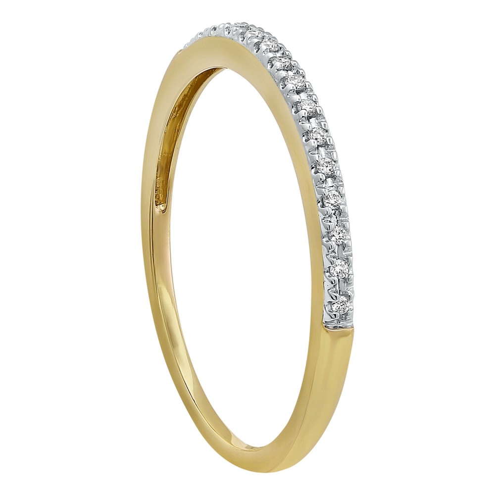 14K yellow gold semi eternity band ring set with 0.06 ct. white brilliant diamonds.