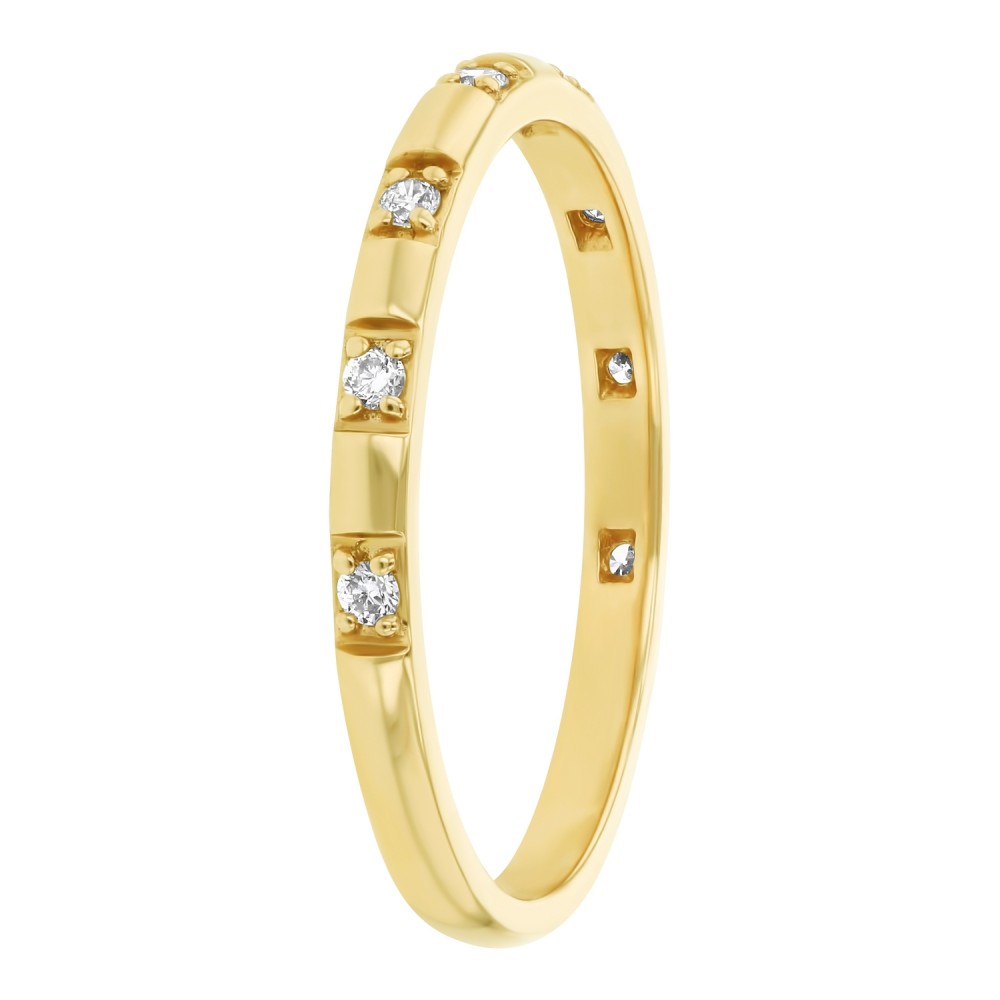 14K yellow gold dainty semi eternity band ring set with 0.09 ct. white brilliant diamonds.
