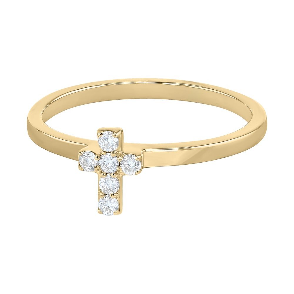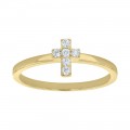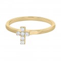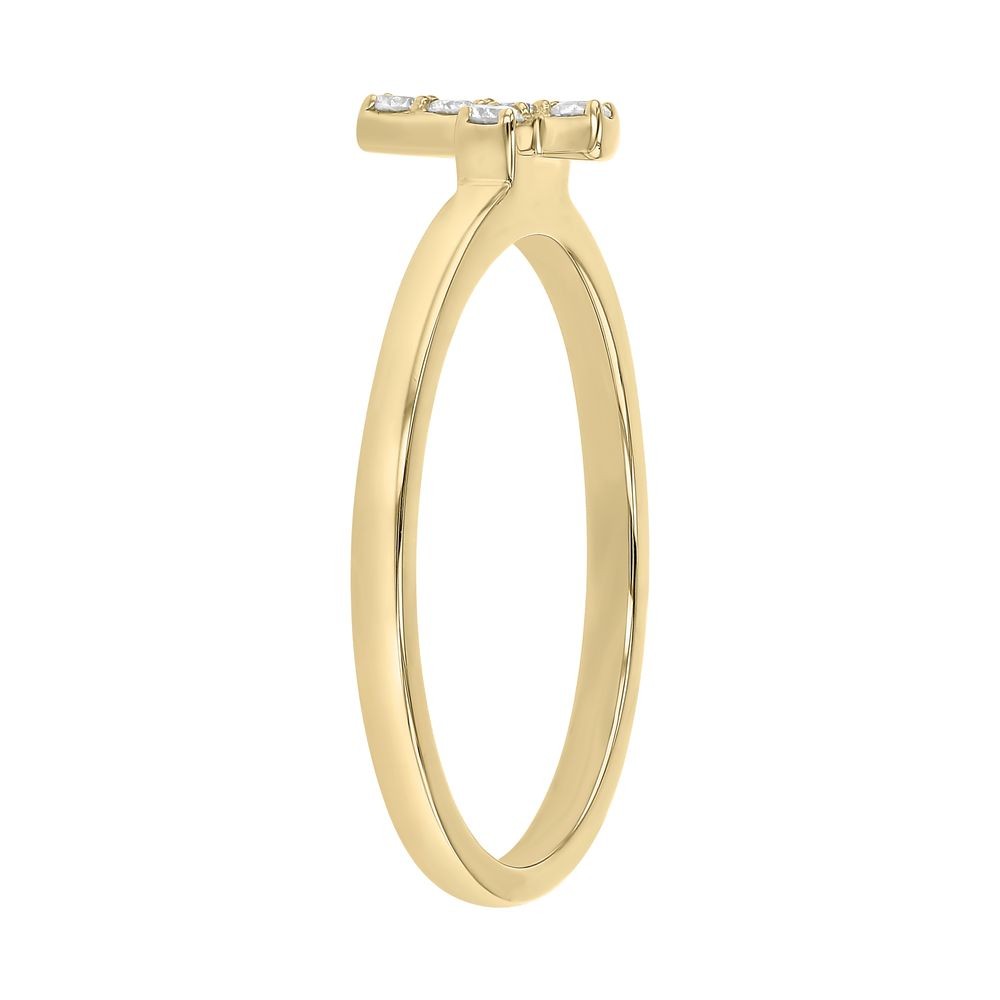 14K yellow gold semi-eternity dainty cross band ring with 0.10 ct. round diamonds.