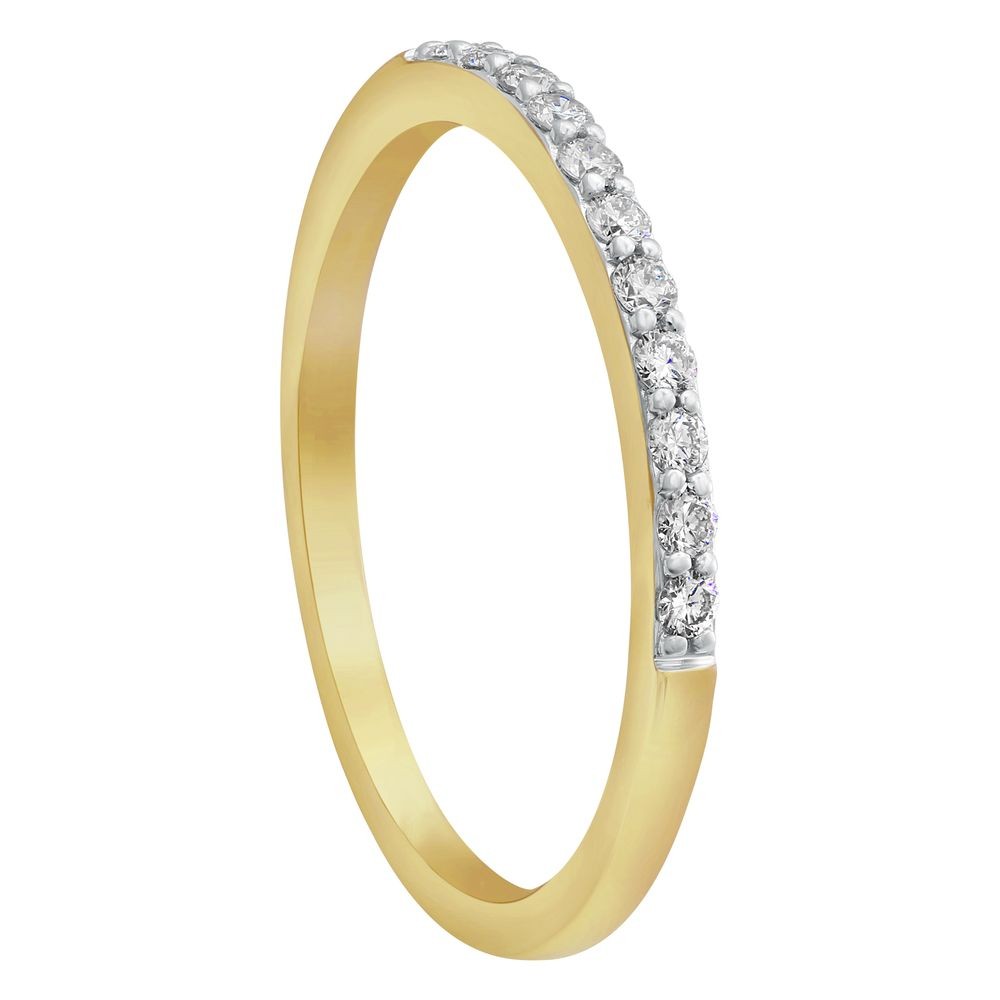 14K yellow gold semi-eternity classic band ring set with 0.16 ct. round diamonds.