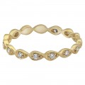 14K yellow gold eternity band ring set with 0.20 ct. round diamonds. Tear drop design and polished detailing gives this dainty ring a distinctive look. The diamonds are bead set all around the ring perimeter.