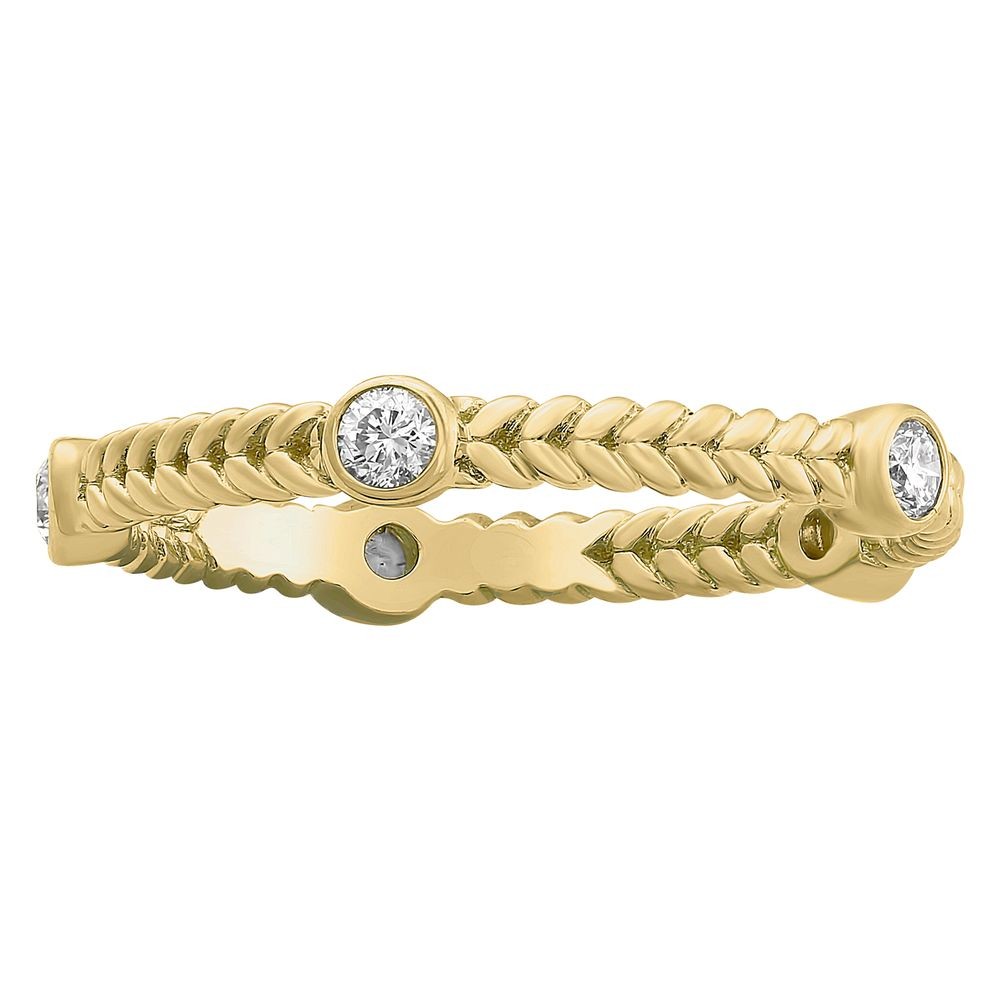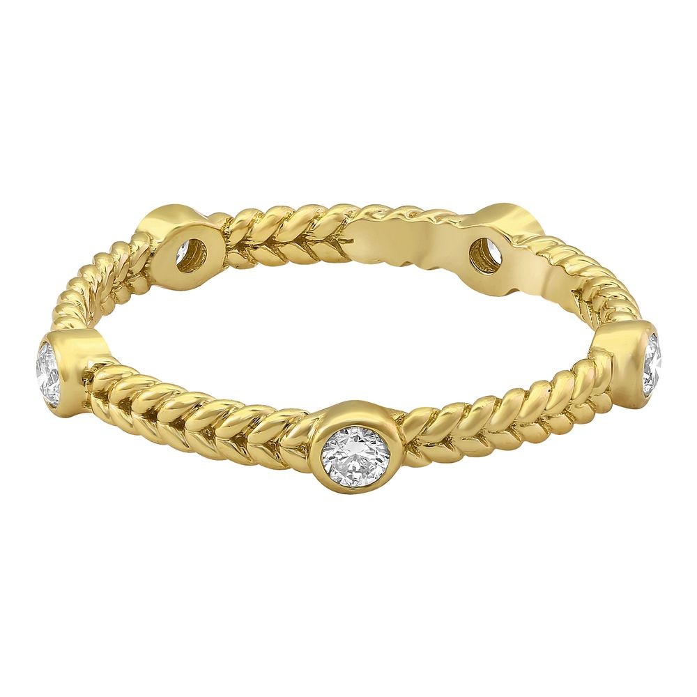 14K yellow gold eternity band ring with 0.25 ct. round diamonds. Braid detailing gives this ring a unique look. The diamonds are bezel set all around the ring perimeter.