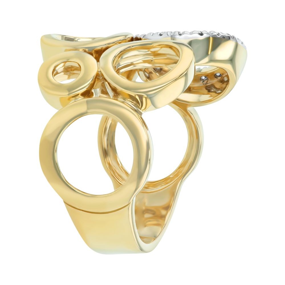 14K yellow gold geometric ring set with 0.25 carat round brilliant diamonds in circles design.
