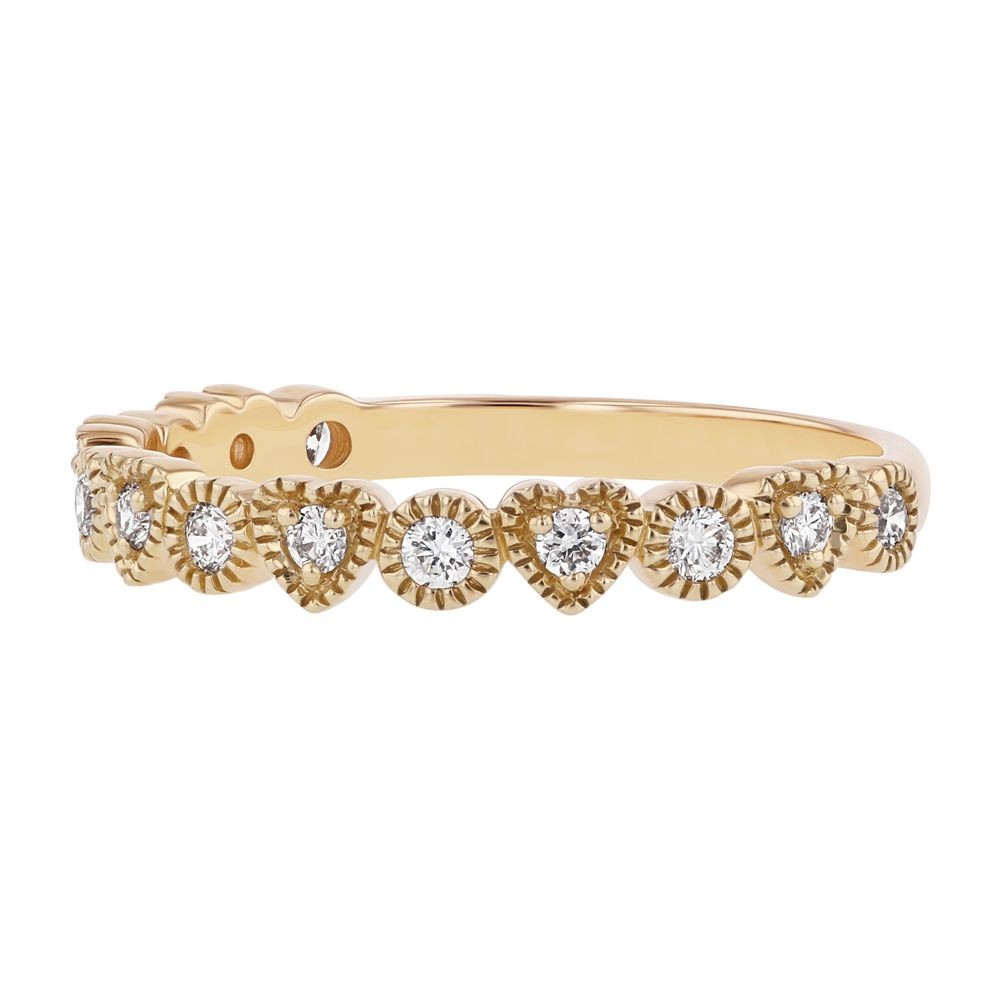 14K yellow gold semi-eternity vintage inspired heart band ring set with 0.25 ct. round diamonds.