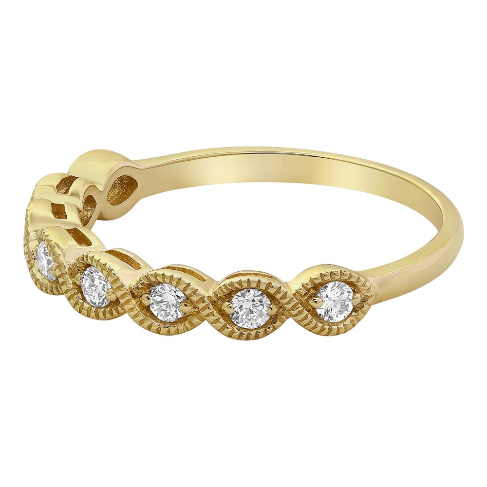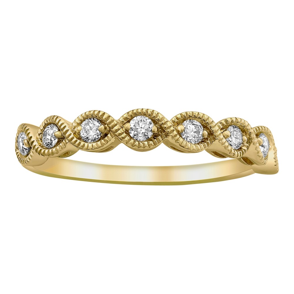 14K yellow gold semi eternity vintage band ring set with 0.25 ct. round brilliant diamonds and vintage polish finish.