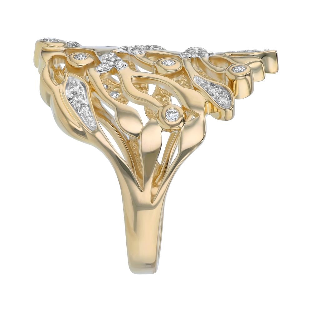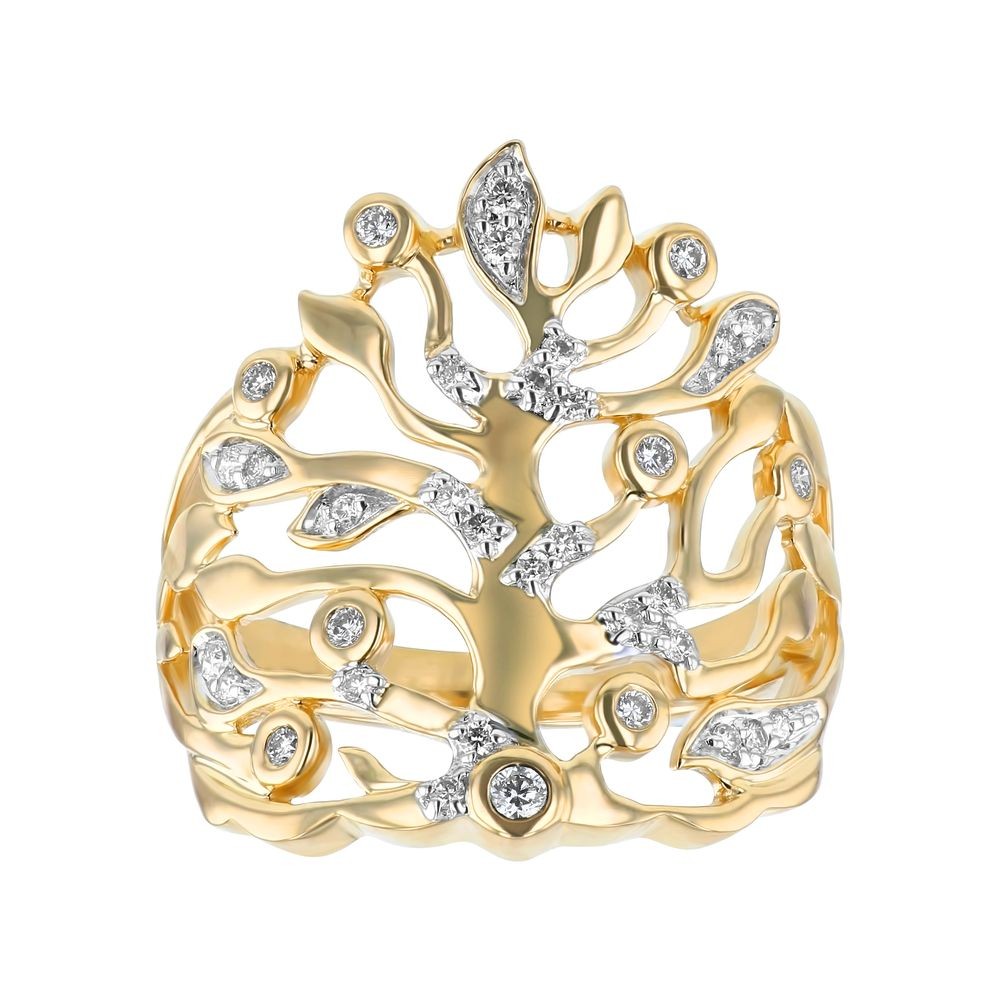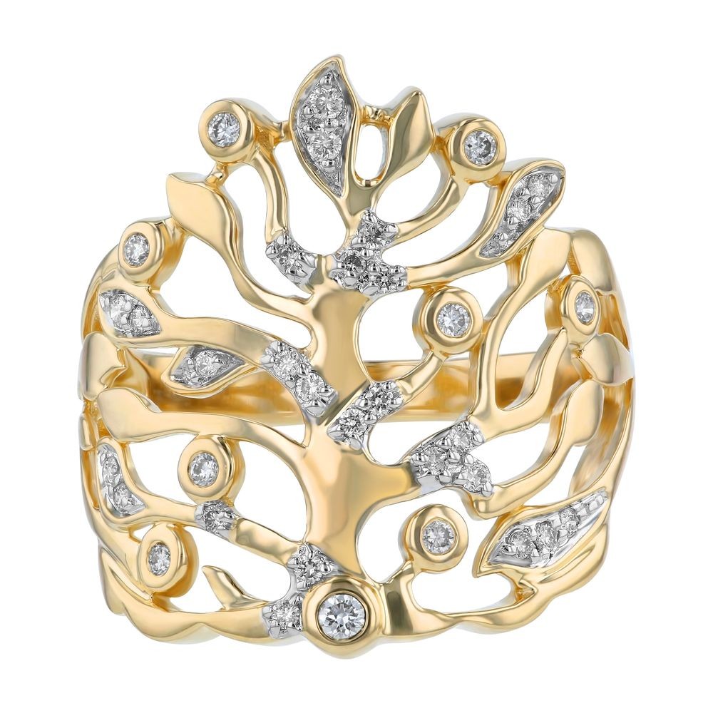 14K yellow gold TREE OF LIFE ring set with 0.25 carat round brilliant diamonds and detailed with high polish finish.
