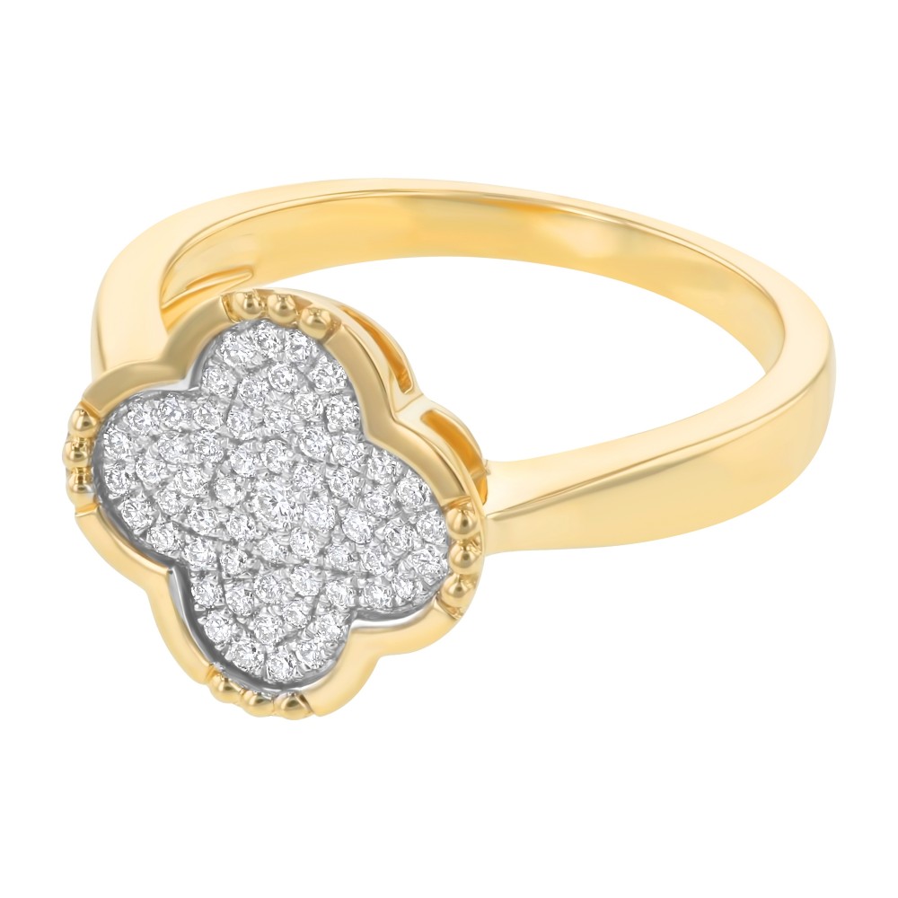 14K yellow gold clover fashion ring pave set with 0.27 carat round brilliant diamonds and high polish finish.