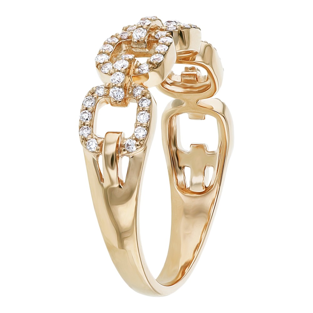 14K yellow gold semi eternity band ring set with 0.33 ct. white brilliant diamonds in cushion links design.