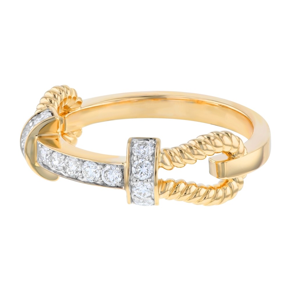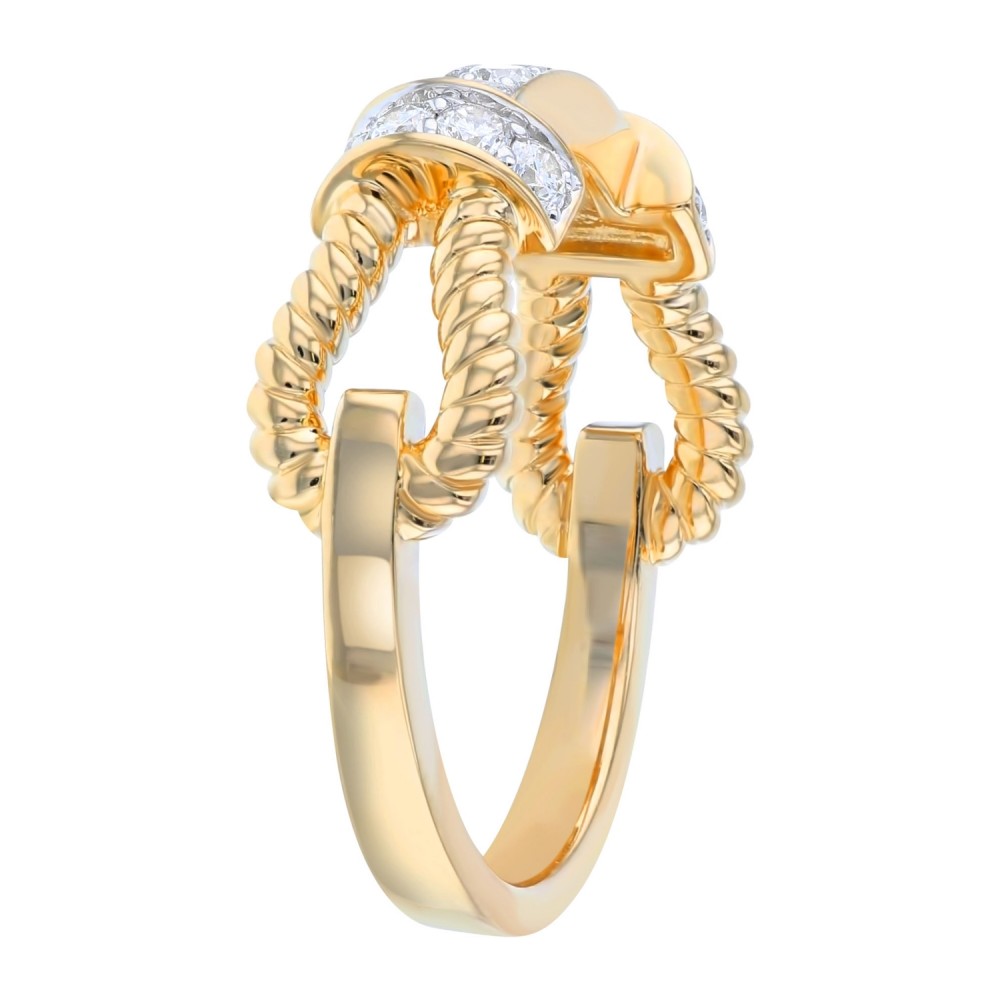 14K yellow gold braids fashion ring set with 0.35 carat round brilliant diamonds and high polish finish.