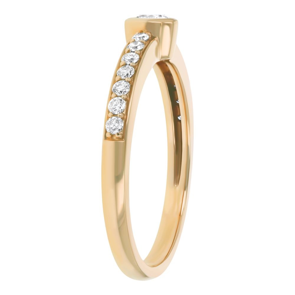 14K yellow gold semi-eternity solitaire band ring set with 0.37 ct. round diamonds.