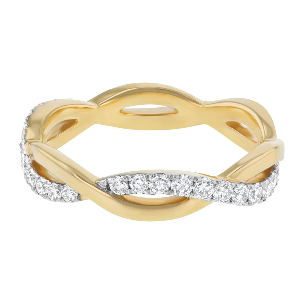 14K yellow gold semi-eternity infinity band ring set with 0.43 ct. round diamonds.