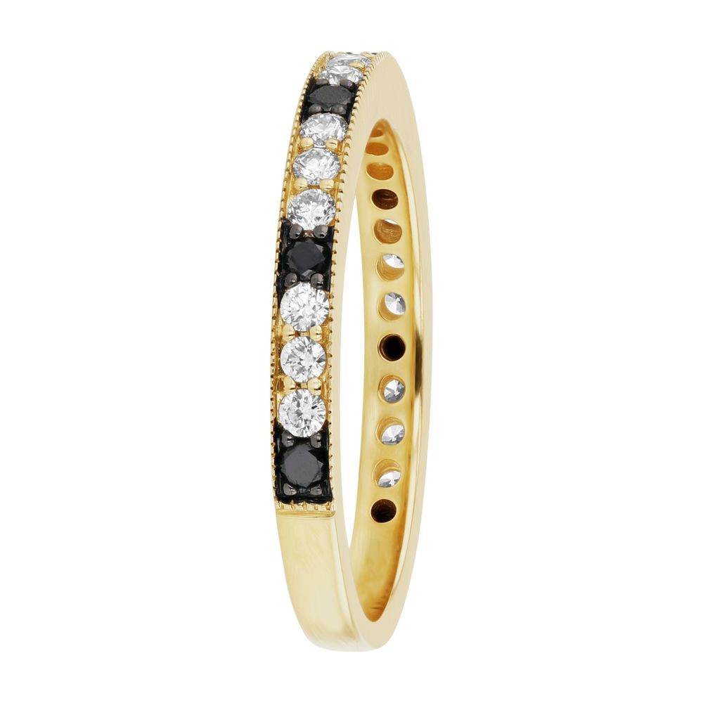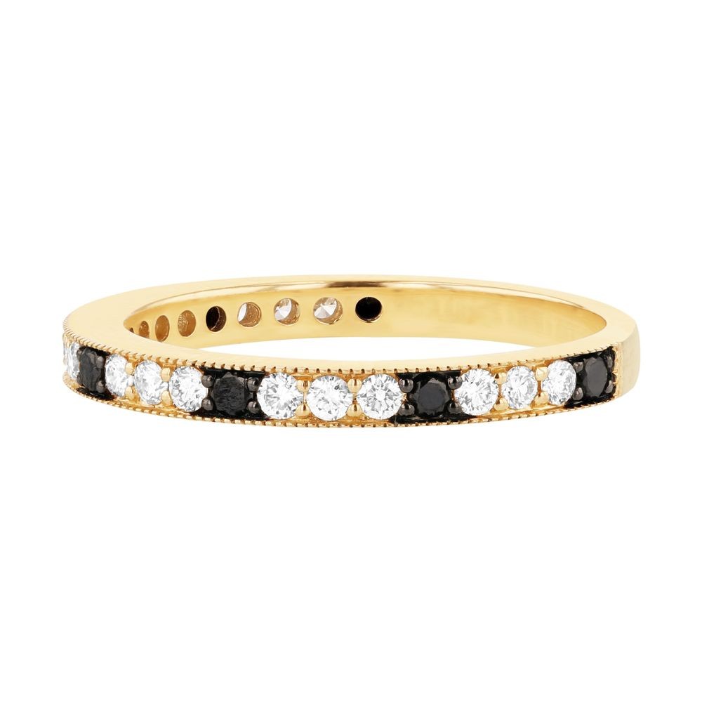 14K yellow gold semi-eternity band ring set with 0.45 ct. round black and white diamonds.