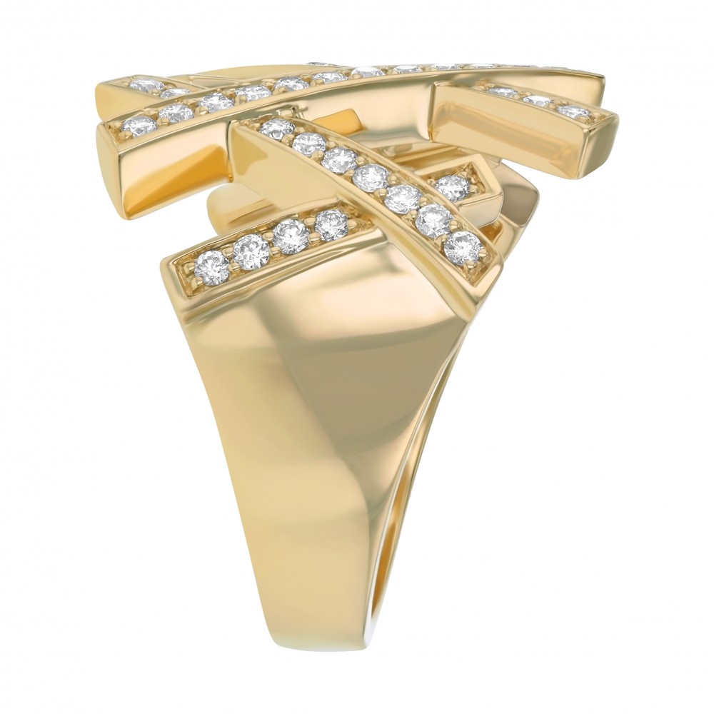 14K yellow gold X ring set with 0.45 carat round brilliant diamonds and high polish finish.