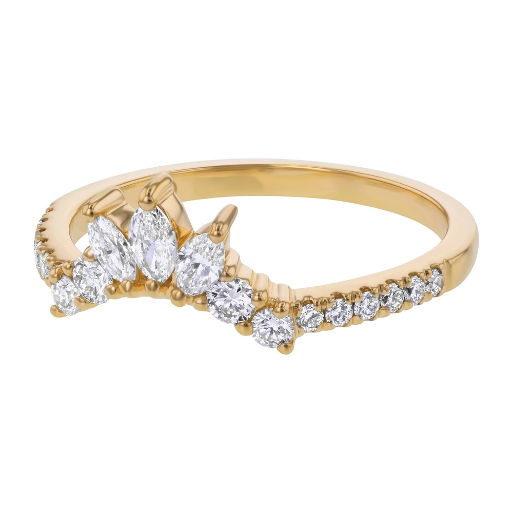 14K yellow gold ring set with 0.50 ct. marquise and round diamonds in tiara design. Excellent match to modern engagement rings. Part of our Crown Rings collection.
