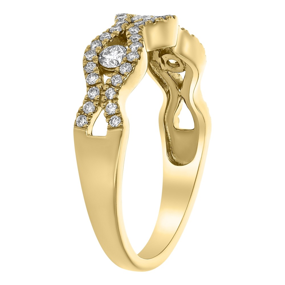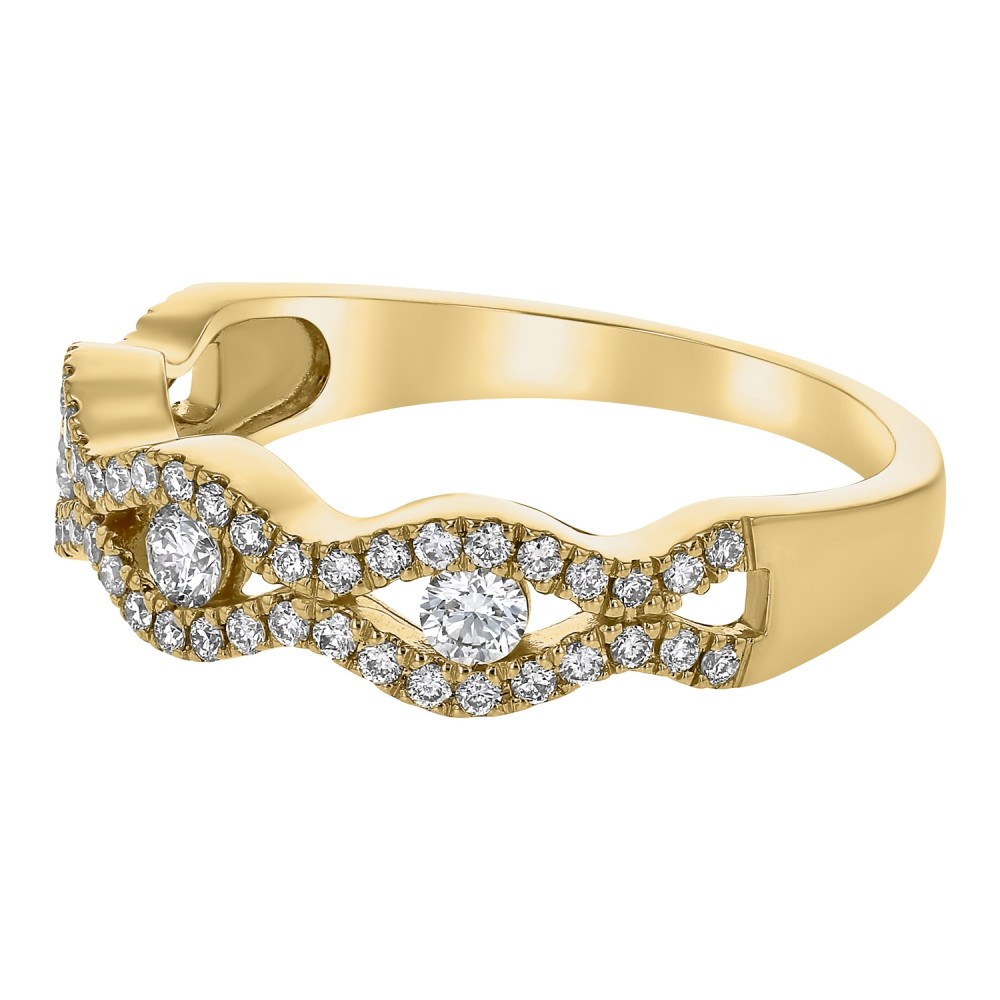 14K yellow gold semi eternity wave band ring set with 0.50 ct. round brilliant diamonds and high polish finish.