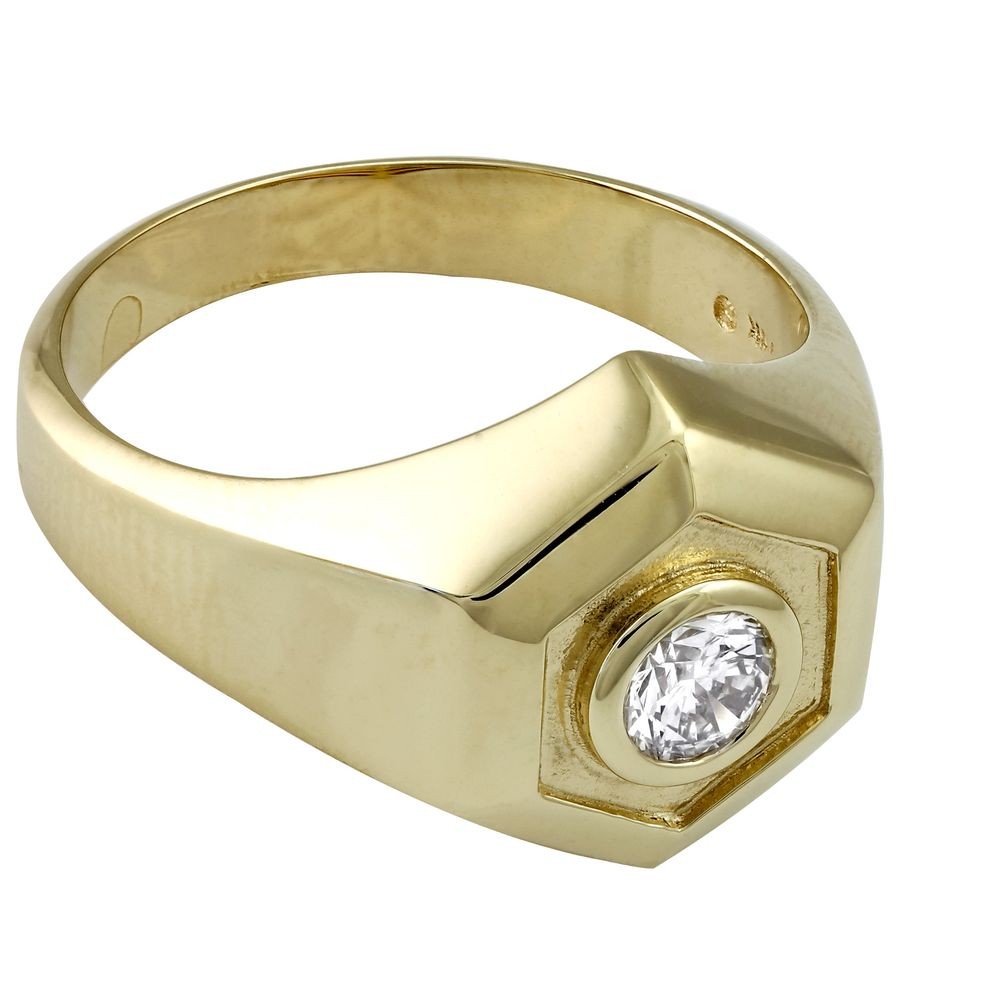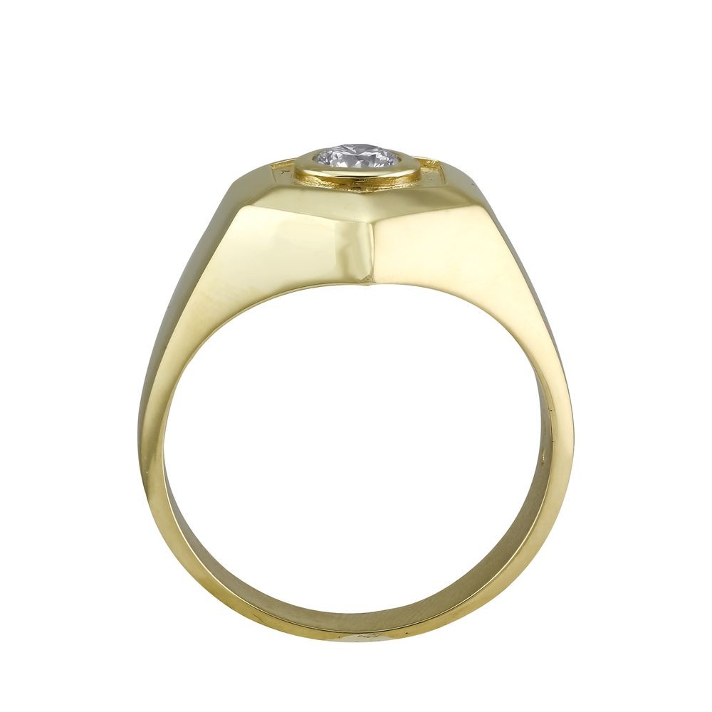14K yellow gold hexagon shape ring set with 0.50 carat round white diamond in high polish finish.