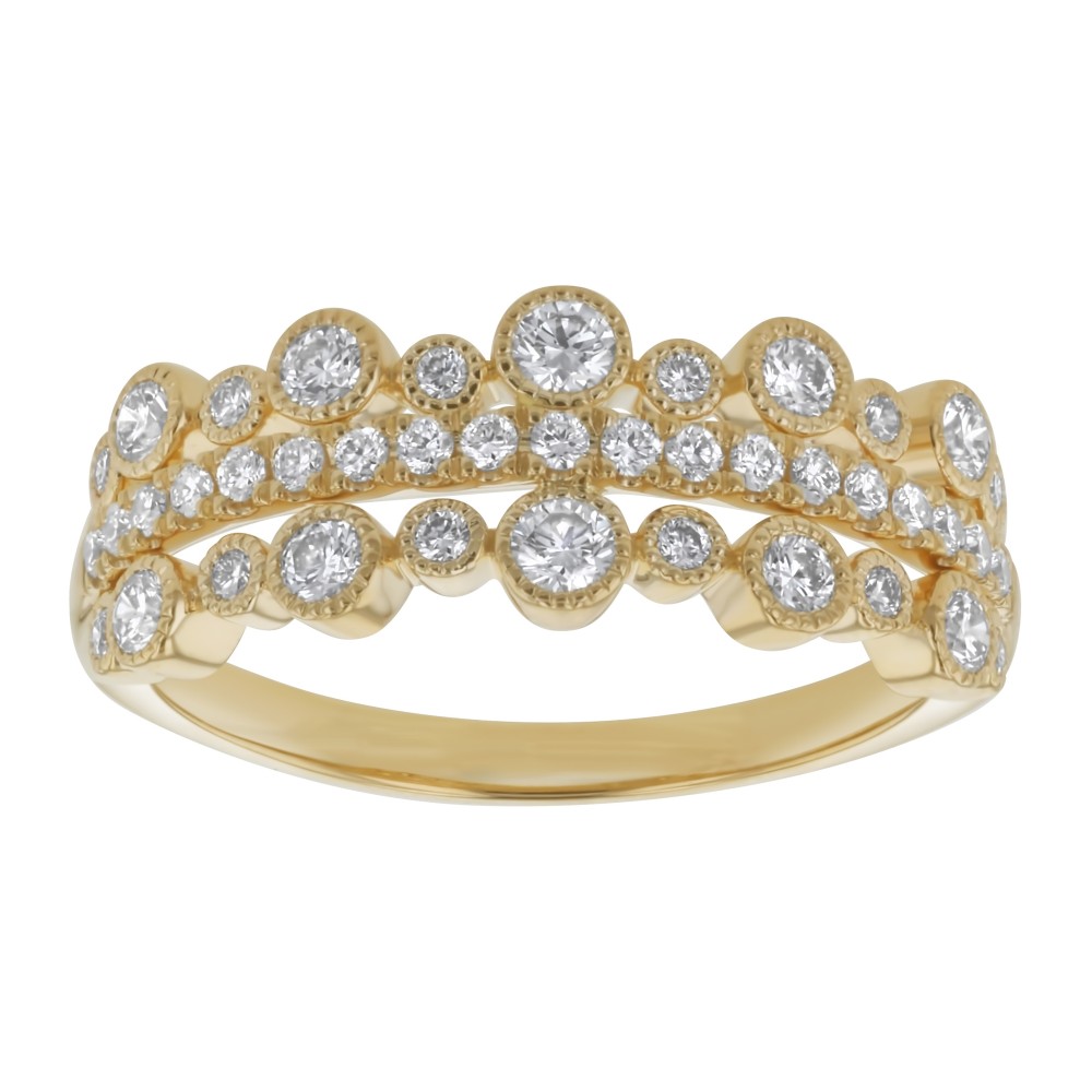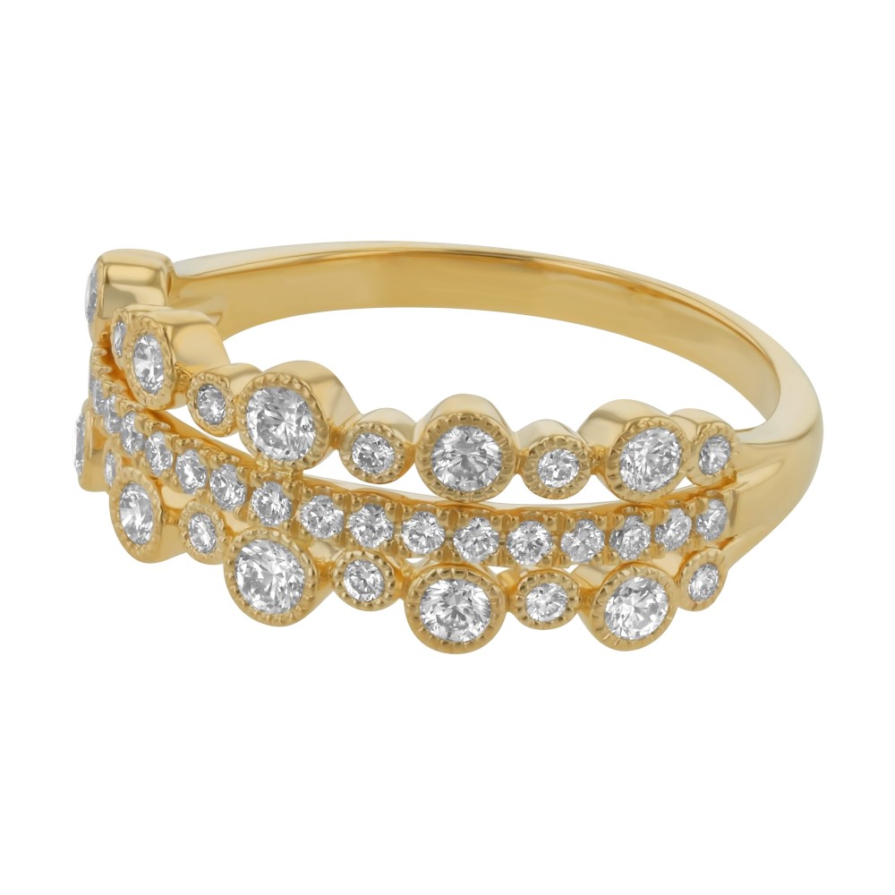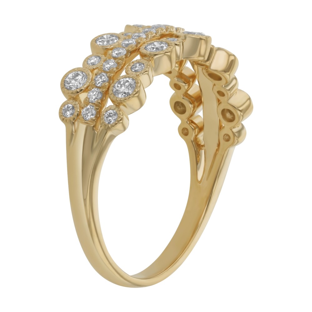 14K yellow gold tree rows bubbles fashion ring set with 0.65 carat round brilliant diamonds and high polish finish.