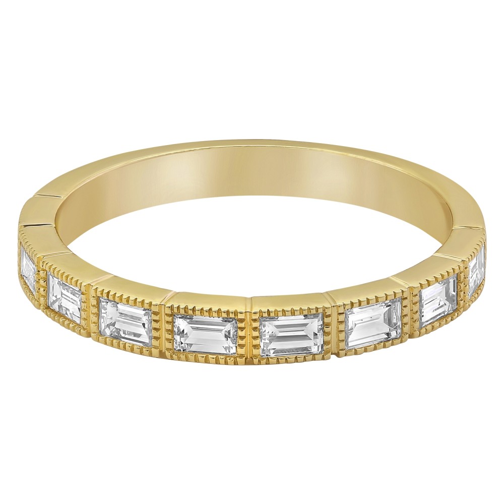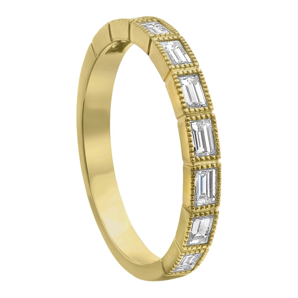 14K yellow gold semi eternity vintage band ring set with 0.70 ct. baguette brilliant diamonds and high polish finish.