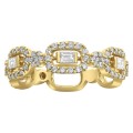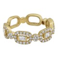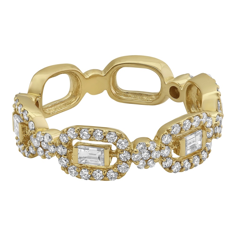 14K yellow gold semi eternity band ring set with 0.90 ct. baguette and round brilliant white diamonds and high polish finish.
