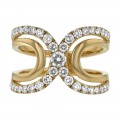 14K yellow gold wide curved ring set with 1.0 ct. round diamonds in two opposing U shapes design.