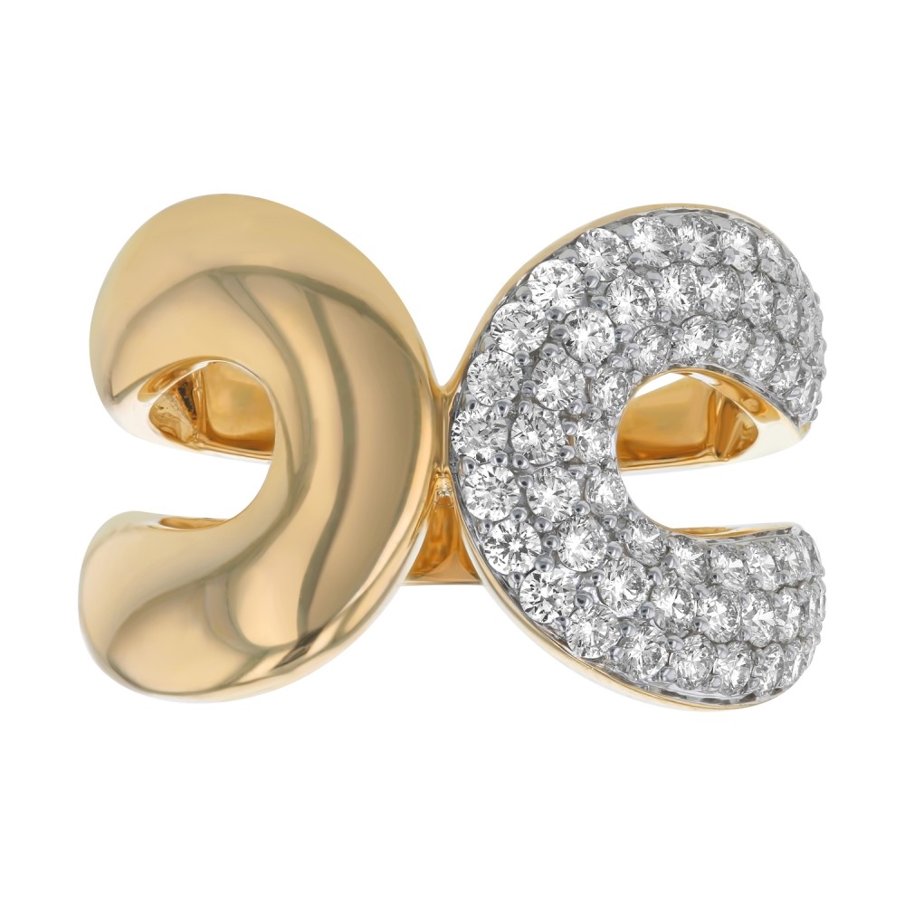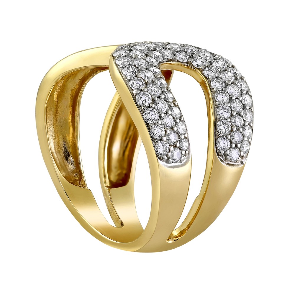 14K yellow gold geometric fashion ring set with 1.00 carat round brilliant diamonds and high polish finish.