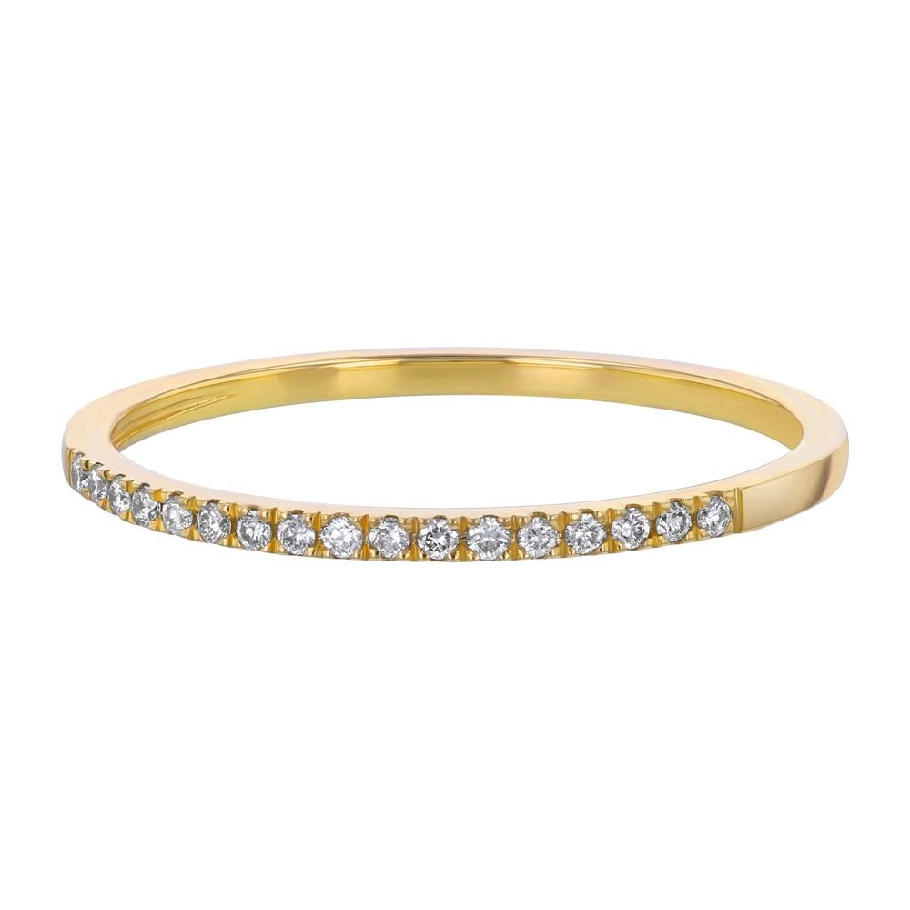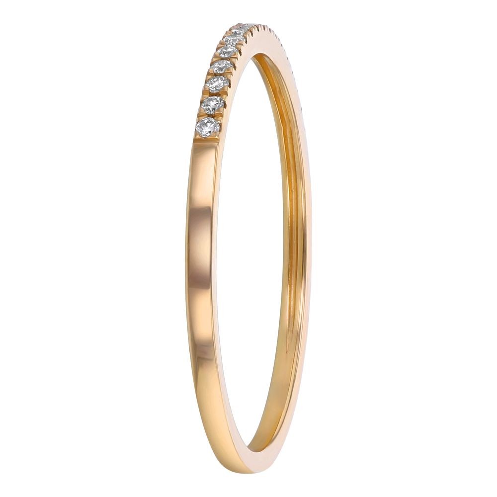 14K yellow gold semi-eternity dainty and classic band ring with 0.08 ct. round diamonds.