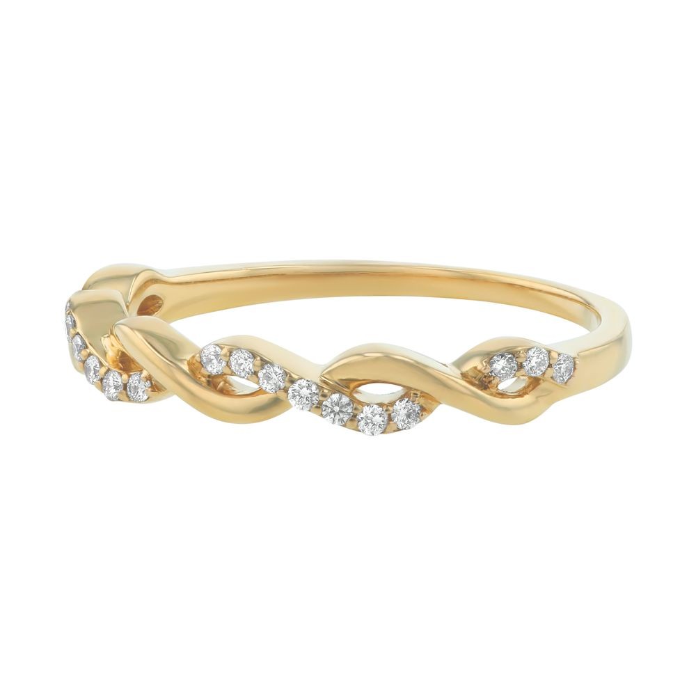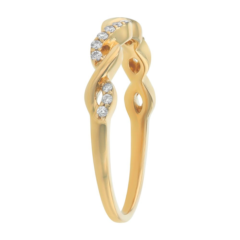 14K yellow gold semi-eternity infinity band ring set with 0.12 ct. round diamonds.