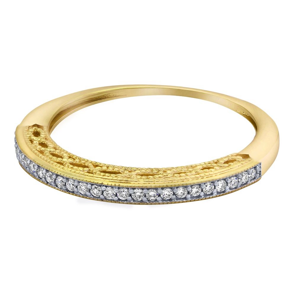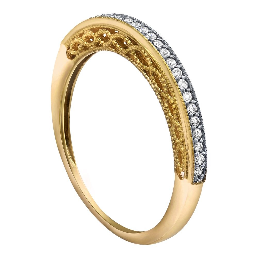 14K yellow gold semi-eternity vintage inspired band ring set with 0.12 ct. round diamonds.